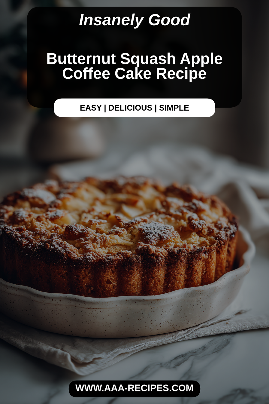 This Butternut Squash Apple Coffee Cake is truly delightful on its own, but it also plays well with others! For a simple weeknight dessert or breakfast, a generous slice with a warm mug of your favorite coffee or a steaming cup of spiced tea is just perfect. If you’re leaning into a slower weekend brunch vibe, a dollop of freshly whipped cream or a small scoop of vanilla bean ice cream really elevates it, making it feel extra special. We sometimes enjoy it with a side of fresh berries, or perhaps a glass of `[Warm Apple Cider](https://aaa-recipes.com/warm-apple-cider-recipe)` for a double dose of autumnal comfort. For the little ones, a tall glass of cold milk is always a hit!