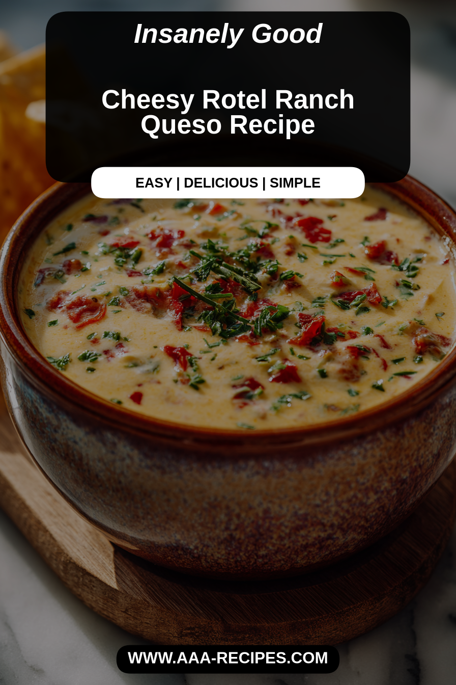This Cheesy Rotel Ranch Queso is a crowd‑pleaser—creamy, tangy, and just the right amount of kick from the Rotel. It came together quickly and was perfect for dipping chips at our game night, though a splash more ranch could make it even richer.