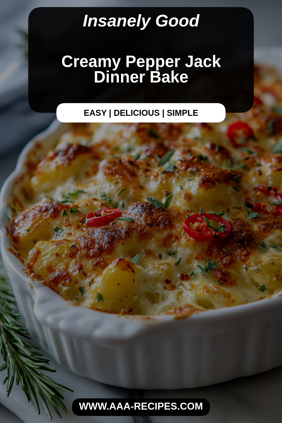 At our house this has become a family ritual more than a recipe. My husband is the one who always slides the baking dish onto the counter first, leaning his elbows on the sill as he waits for the first spoonful. The kids often appear midway through the bake, shoes squeaking, the younger one waving a drawn-on placard that says “official taste tester.” Our dog, Biscuit, sits by the oven with a solemn, hopeful stare — the kind that insists food should be shared. I usually have half a mug of coffee cooling beside the sink, forgotten until the kitchen quiets after dinner. Soft music plays—something lazy, looped—and we trade little stories about the day, the kind that fit neatly between bites. Creamy Pepper Jack Dinner Bake feels like a warm conversation you can eat; familiar, easy, and exactly the right kind of slow.