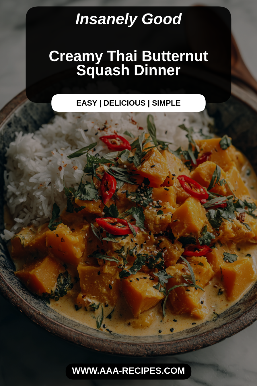 This Creamy Thai Butternut Squash Dinner is wonderfully versatile when it comes to serving. For a cozy weeknight, we often simply ladle it over a bed of fluffy jasmine rice, letting the rice soak up all that incredible sauce. If you have a few extra minutes, a sprinkle of fresh cilantro and a squeeze of lime really brighten everything up. On a slower weekend evening, you might consider serving it alongside some Cozy Garlic Noodles for a richer, more substantial meal. We also love to offer a small bowl of roasted peanuts for a lovely crunch, or a few red pepper flakes for those who enjoy a little extra warmth. And for a refreshing pairing, a tall glass of Ginger Lime Sparkling Water cuts through the richness beautifully, leaving you feeling perfectly satisfied.