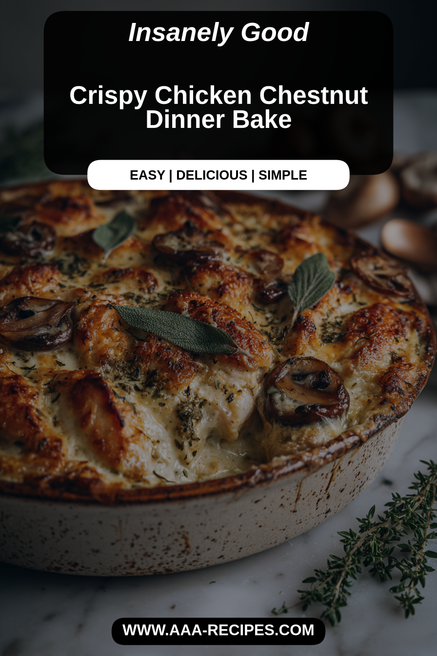 I remember the first time I made this Crispy Chicken Chestnut Dinner Bake on a rainy Saturday that smelled faintly of wet leaves and coffee. It felt like a small, slow celebration — a golden, crackly top giving way to warm, tender chicken and little pockets of chestnut sweetness. There’s something about that contrast between crisp and soft that feels like a cozy hug after a long week. Honestly, it’s the kind of dish you want on the table when you’re not trying too hard, but you still want everyone to feel a little bit noticed.