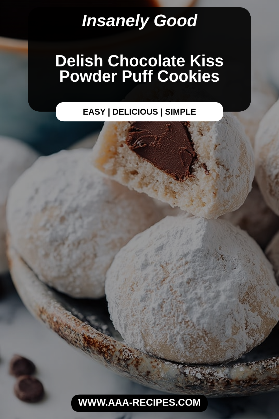 These Delish Chocolate Kiss Powder Puff Cookies are delightfully soft and melt in your mouth, just as promised. The chocolate kiss in the center adds a lovely touch of sweetness, making them perfect for sharing at any gathering. They’re a bit delicate to handle right out of the oven, but well worth the careful baking!