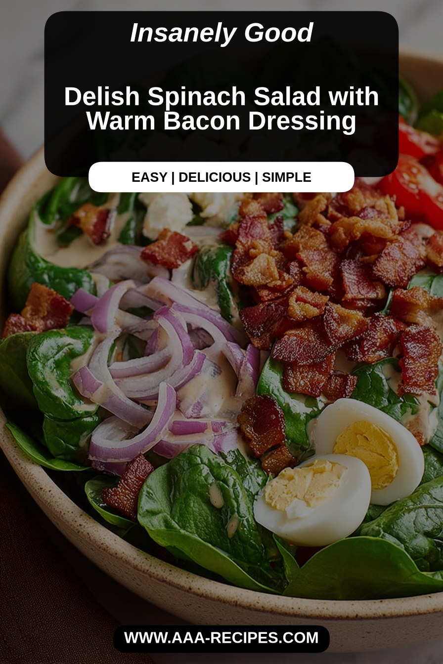 A warm dressing is the star here—pour it hot enough to gently wilt the spinach but not so hot it cooks it into mush. If you want a punchier balance, add a touch more acid or a small spoon of mustard to the vinaigrette. And remember: crunchy toppings should be held back until serving to maintain texture.