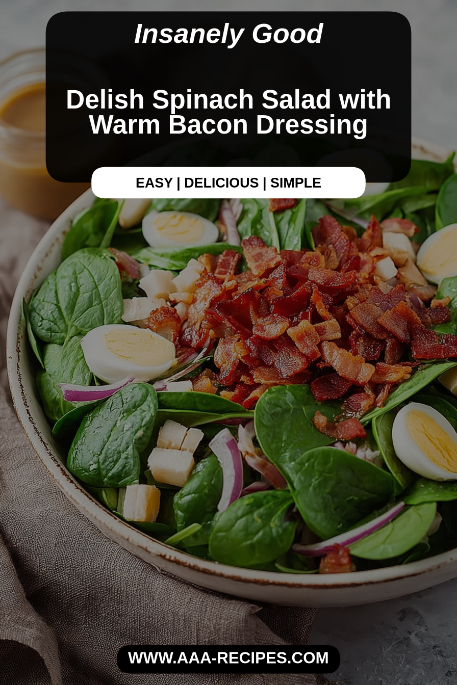 – Warm dressing: The hot bacon vinaigrette lightly wilts the spinach and releases aromas that transform the whole bowl from ordinary to craveable.