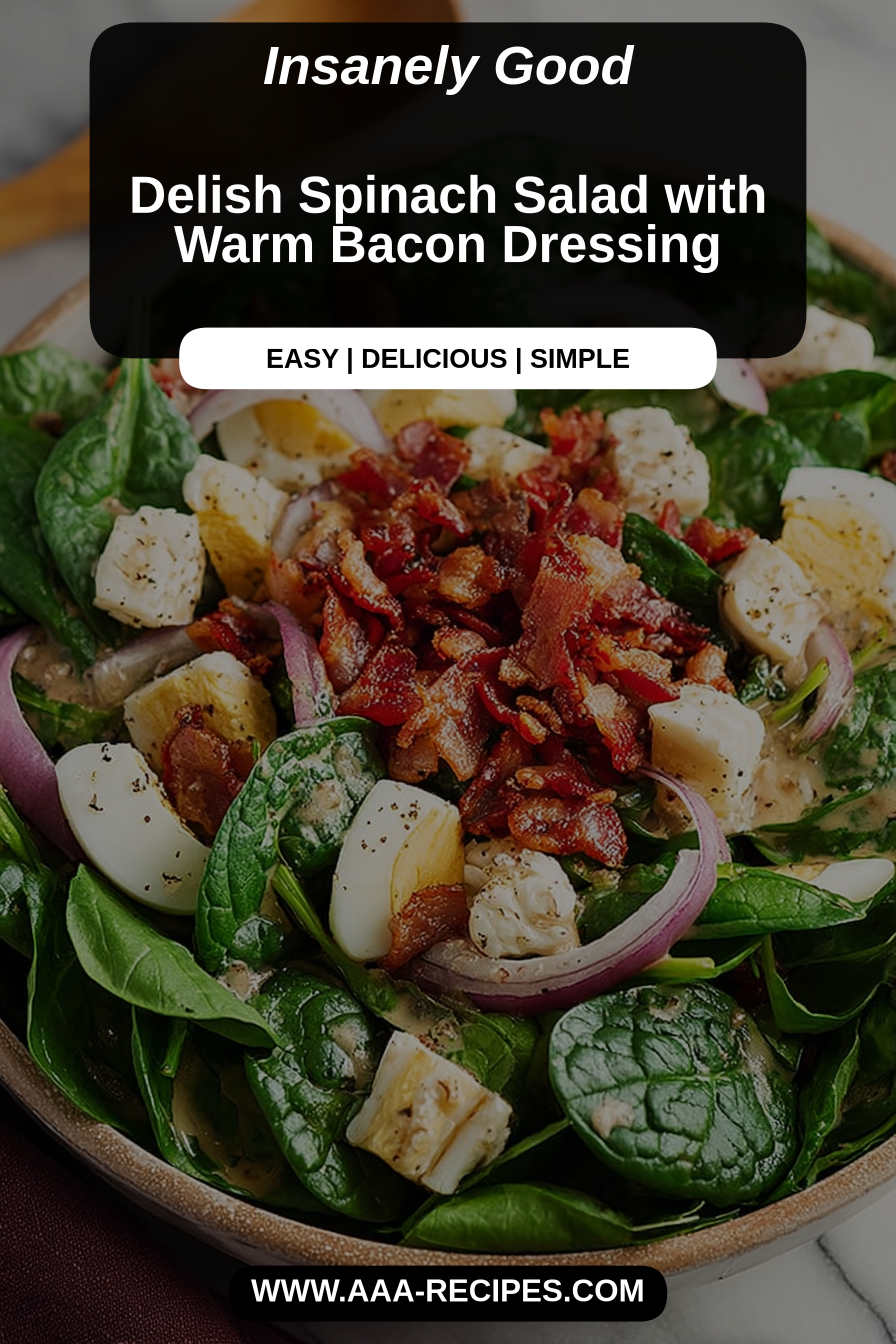 I learned early on that the secret to the best warm-dressed spinach is timing. Let the bacon vinaigrette come off the heat long enough to slightly cool before you toss it with the leaves—hot enough to wilt and carry flavor, not so hot that it cooks everything into limp mush. Another lesson: drain any excess fat from the dressing if your bacon runs particularly greasy; you want glossy, flavored oil, not a slick puddle. Small touches like a quick toast of nuts or a sprinkle of sharp cheese make the salad feel composed and thoughtful without extra fuss.