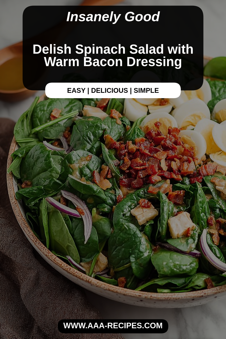 This is one of those salads that rewards attention to small details. I learned to reserve a little bacon fat for the dressing instead of tossing it—the flavor lift is huge. It’s also tempting to pour piping-hot dressing straight from the pan; give it a minute so you don’t wilt everything into oblivion. Balancing vinegar and a touch of sweetness is the other key: too sharp and it overpowers the spinach, too sweet and it feels cloying. Toasted nuts and a quick fry of shallot or red onion add layers of flavor, and adding a soft-cooked egg or hearty grains turns this from side to a satisfying meal.