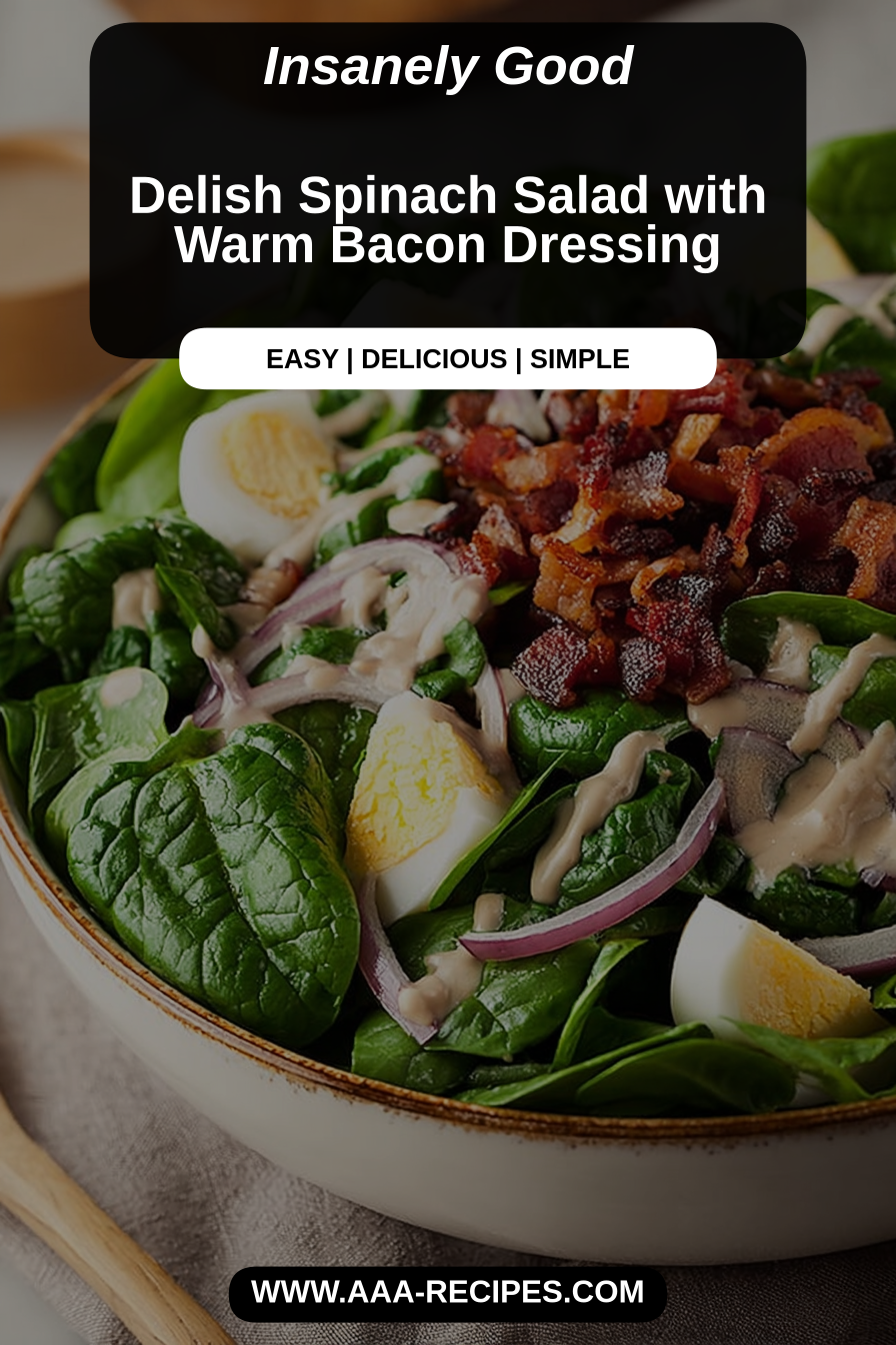 Keep the bacon drippings warm but not smoking; that’s the sweet spot for marrying the vinegar and any sweetener so the dressing is glossy and balanced. If your spinach seems watery, drain and blot it dry — wet leaves dilute the dressing and mute flavor.