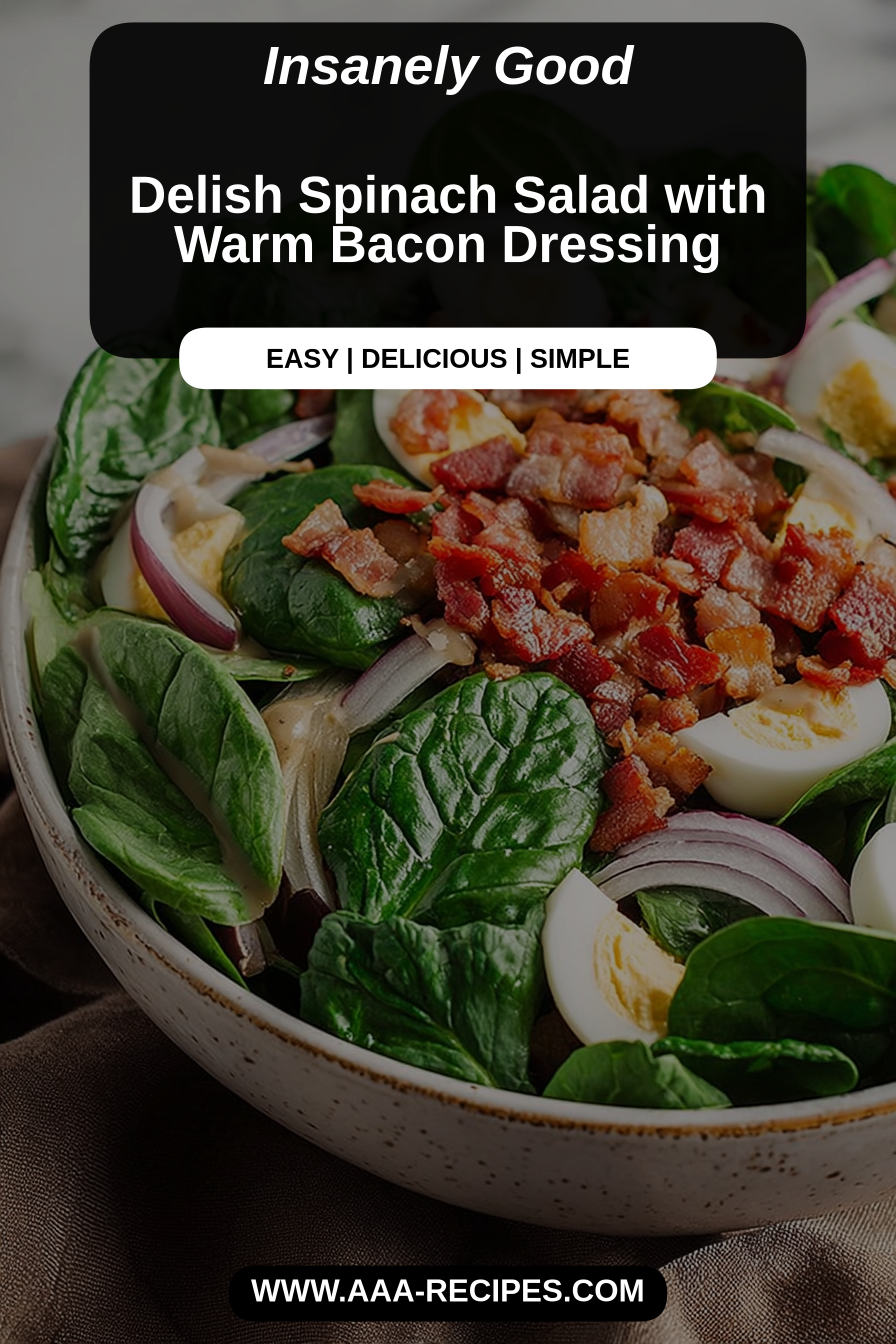 This salad grew out of trying to make weekday greens more interesting without a lot of fuss. Over the years I learned that timing is everything: the dressing should be hot but not smoking so it wilts the spinach gently instead of turning it limp and bruised. Using the rendered bacon fat as the base for the vinaigrette gives the dressing depth, but acid (vinegar or lemon) and a touch of sweetness balance it so the fat doesn’t dominate. People often skip toasted nuts or pickled onions, but those little contrasts are what keep each bite interesting. The trickiest part is assembling at the last minute so the warm dressing meets cold greens right before serving—that’s when this salad sings.