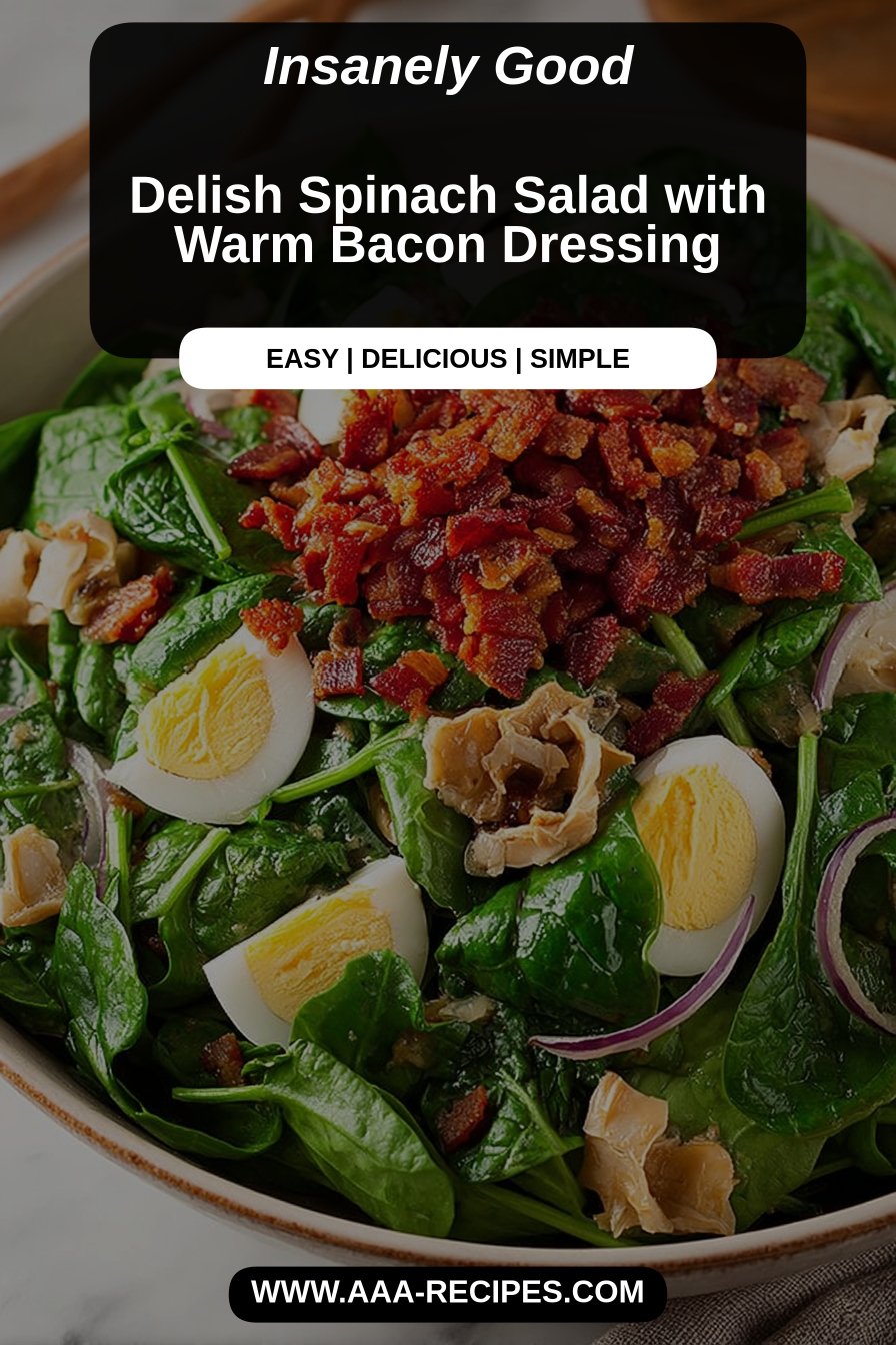 My husband practically demands this on weeknights now โ he calls it โthe bacon saladโ like itโs our family heirloom. I first made it on a hectic Thursday when I needed a side that felt like effort without actually being fussy. The warm dressing made the spinach change texture in such a cozy, homey way that even our kid, who famously prefers pasta, asked for seconds. Since then itโs become our go-to for dinners, potlucks, and when I want something that tastes indulgent but is mostly spinach.