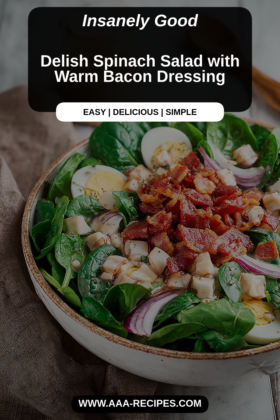 If you’re serving a crowd, keep the salad greens and toppings separate and pour the warm dressing over only what you’ll serve immediately—leftover dressed spinach turns limp. For vegetarians, crisp tempeh or smoked mushrooms can emulate the smoky element; add a touch of smoked paprika to the dressing for extra depth. And if your bacon bits go floppy, re-crisp them briefly in a hot oven before using.