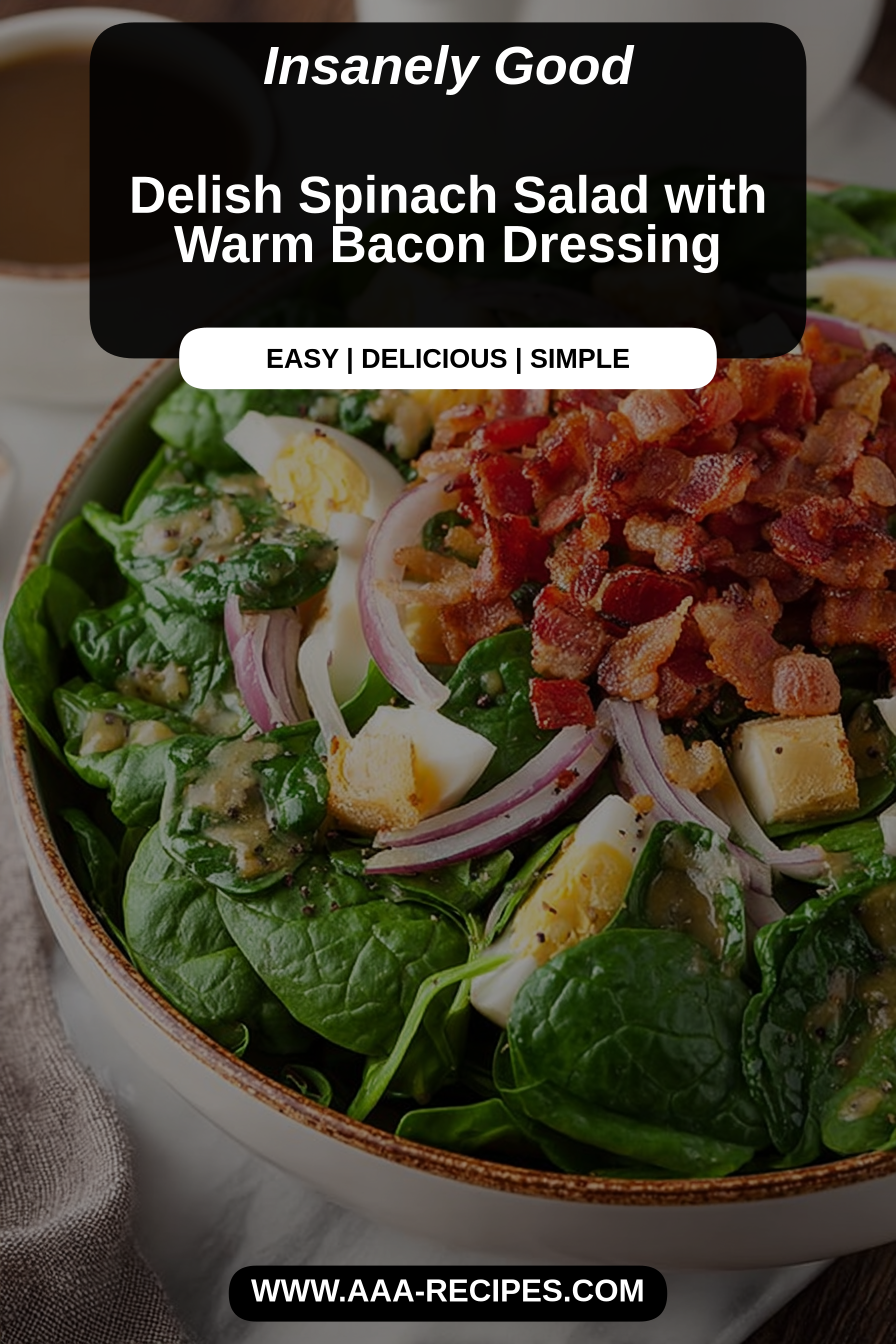 I learned early on that timing is everything with this salad: you want the bacon and its drippings hot enough to bloom the vinaigrette and slightly wilt the spinach, but not so hot that the greens go soggy. Using thinly sliced red onion (so it softens just a touch from the warm dressing) and slightly undercooking the bacon for a bit of chew gives the best texture contrast. People often overdress salads—start with less vinaigrette and add more if needed. Finally, warm components should be added to the salad just before serving so the leaves stay vibrant and slightly glossy rather than limp.