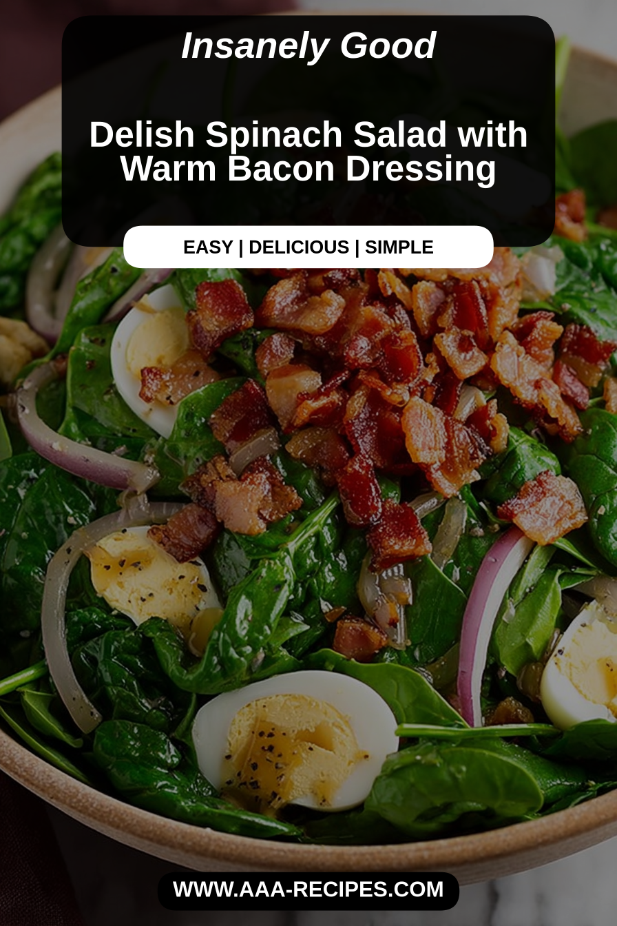 This salad leans on technique more than complexity. The trick is rendering the bacon slowly enough to get flavorful fat but not so long that it burns and turns bitter; that fat is the backbone of the dressing. Toss the dressing while it’s warm so the leaves pick up flavor and the dressing slightly softens the spinach without making it soggy. I’ve learned to pulse crunchy add-ins like nuts or croutons gently into the salad just before serving so they stay crisp. Little touches, like toasting nuts or finishing with a quick grind of pepper, elevate the whole thing.