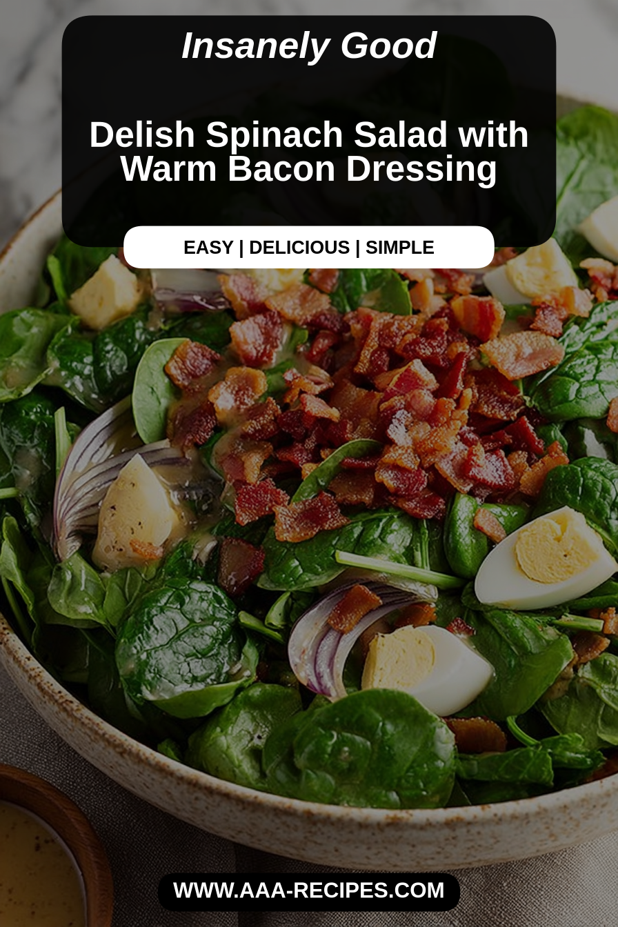 This salad grew from those classic diner-style warm bacon vinaigrettes but tightened up for home kitchens. The trick is heating the dressing just enough to bloom the aromatics—shallots or onions—without burning the bacon fat, which would make the dressing bitter. I’ve learned to pour the hot vinaigrette over the spinach right away so the leaves soften but don’t become limp and soggy. Balancing the acid and sweetness in the dressing is key; a little sweetness tames the sharpness of the vinegar and brings out the bacon’s savory notes. Lastly, don’t skip finishing touches—freshly ground pepper, a squeeze of citrus if you like, or a sprinkle of toasted nuts can elevate it from “very good” to “I need this recipe.”