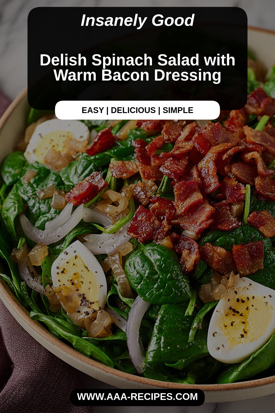 My husband is the salad evangelist in our house—he’ll choose this over almost anything else. He always asks for extra bacon (what man doesn’t?), and our kids have declared it “the salad with the crunchy bits,” which, to be fair, is an excellent marketing line. It started as a quick weeknight riff when I wanted something green that didn’t feel boring, and now it’s a staple whenever we’re entertaining because everyone loves the contrast of warm, savory dressing and crisp spinach.