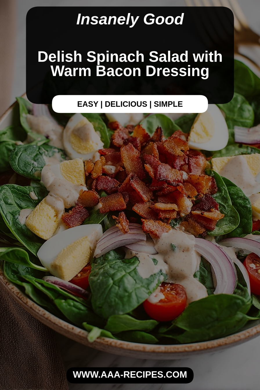 This salad is all about temperature and timing. The magic comes from pouring a warm, slightly sweetened vinaigrette (made from bacon fat, vinegar, and a touch of mustard or sweetener) over cold spinach so the leaves soften just enough to drink up the flavors. I learned that slicing the onion very thin keeps its bite but avoids overpowering the dish, and that crisp bacon added at the end preserves its texture. People often overdress salads or mix everything too early; for this one I prefer assembling and tossing at the last minute so contrasts remain bright and satisfying.