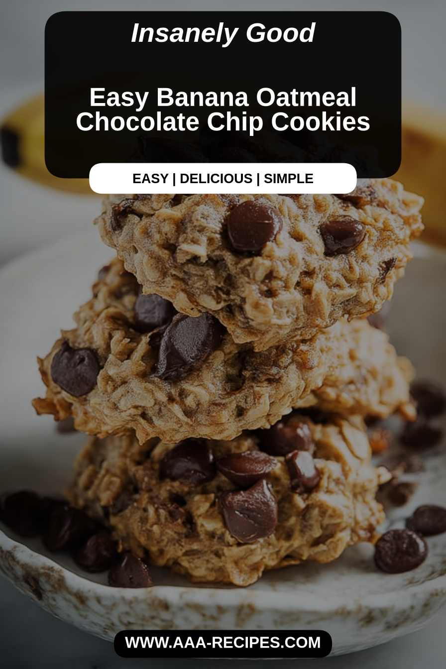 This recipe grew from a desire to use up bananas without making banana bread every time. I learned that the ripeness of the banana controls both sweetness and structure—too green and the cookies are bland; too mushy and they spread differently. Rolled oats give the best chew and structure; quick oats work in a pinch but the texture shifts. A light hand when folding the oats and chips in prevents gluey cookies; overmixing tends to compact the batter and yield a denser bite. Little touches like a sprinkle of flaky sea salt on top before baking or resting the scooped dough for 10 minutes can make the flavors sing and the texture just right.