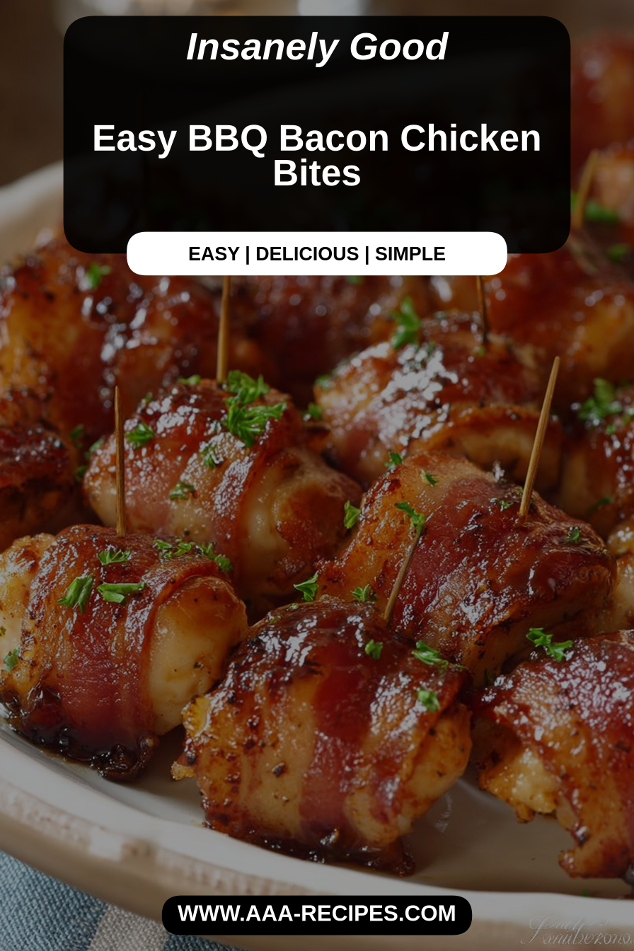 This recipe is a bite-sized celebration of smoky, savory, and slightly sweet — tender pieces of chicken wrapped (or topped) with bacon and slathered in a glossy barbecue glaze. It’s one of those recipes that looks like a fuss but comes together quickly, and it reliably disappears fast at weeknight dinners and weekend gatherings alike.