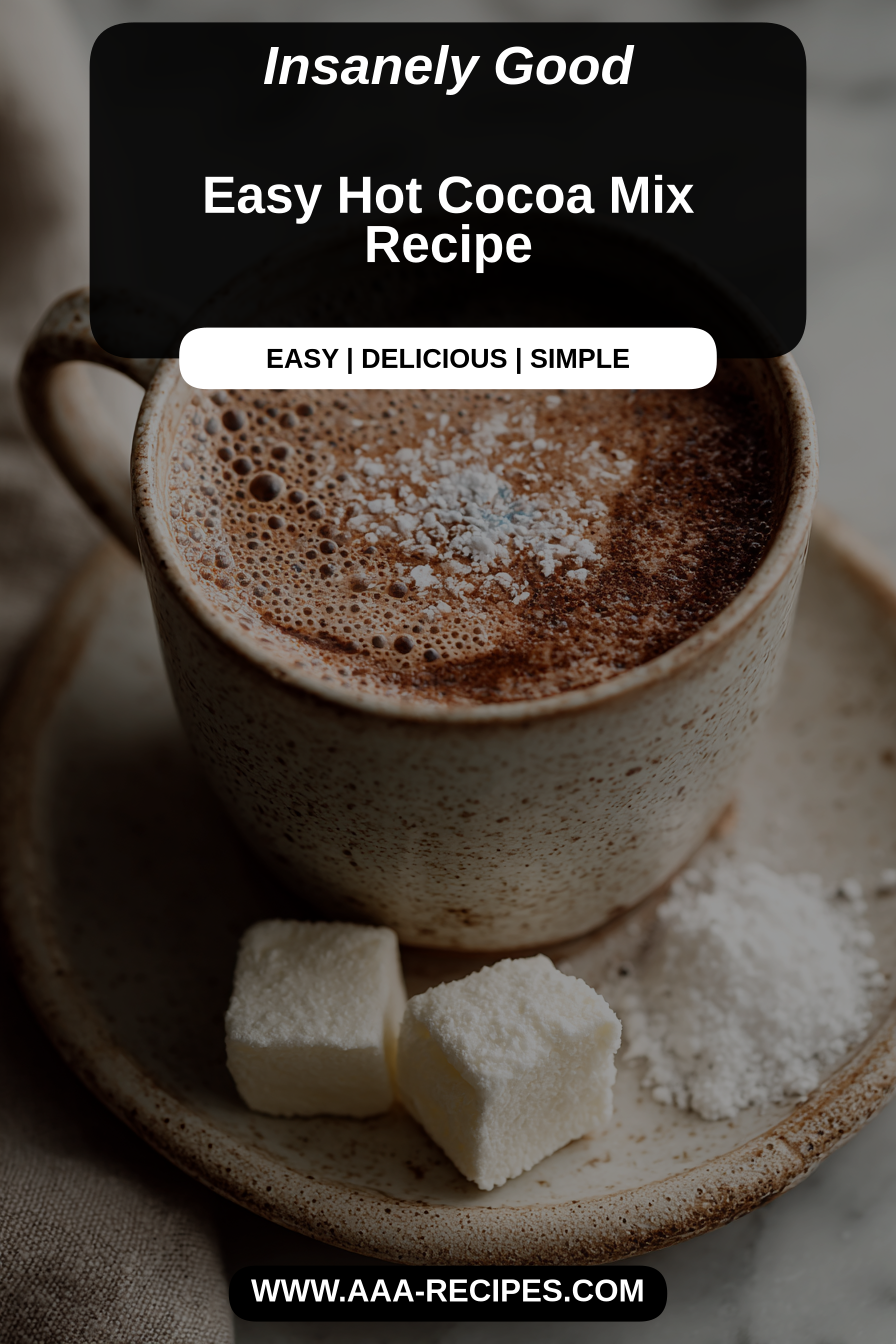 There’s a beautiful rhythm to making this Easy Hot Cocoa Mix, a gentle unfolding that encourages you to slow down. It starts with the quiet clink of measuring cups and spoons, the soft sifting of cocoa powder, releasing that deep, earthy scent that promises warmth. You might find yourself humming a little tune as you whisk the ingredients together in a large bowl, watching the fine powders swirl and blend into a uniform, rich brown. There’s no rush, no pressure, just the simple, satisfying task of creating something lovely. As the mix goes into its storage jar, perhaps a pretty glass one, you can almost see the future moments of comfort it holds – the quiet mornings, the snowy afternoons, the peaceful evenings. Later, when it’s time to actually make a cup, the slow warming of the milk on the stove, the gentle steam rising, the way the mix reluctantly, then gracefully, melts into the liquid as you stir with a wooden spoon. It’s about the anticipation of that first sip, the way the warmth spreads through your hands from the mug, the rich, subtle bitterness of the chocolate mellowed by the sweetness. These aren’t just steps; they’re tiny invitations to savor, to be present, to find joy in the simple act of preparing and enjoying something truly comforting. It’s a meditation in a mug, really.