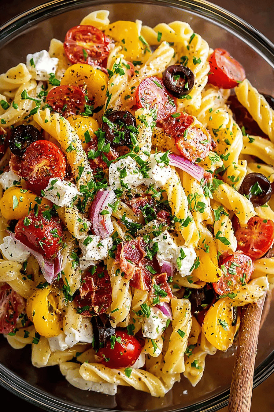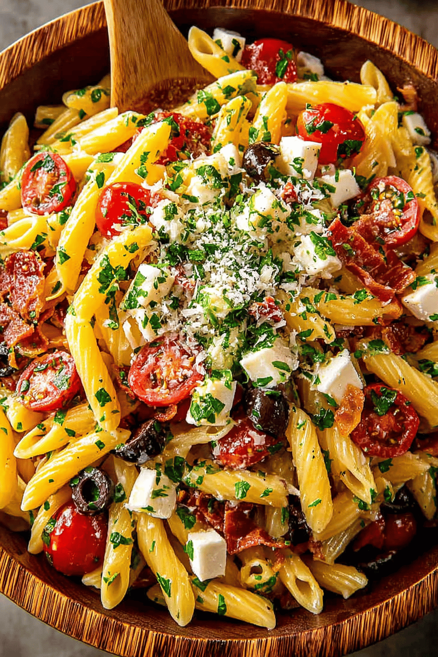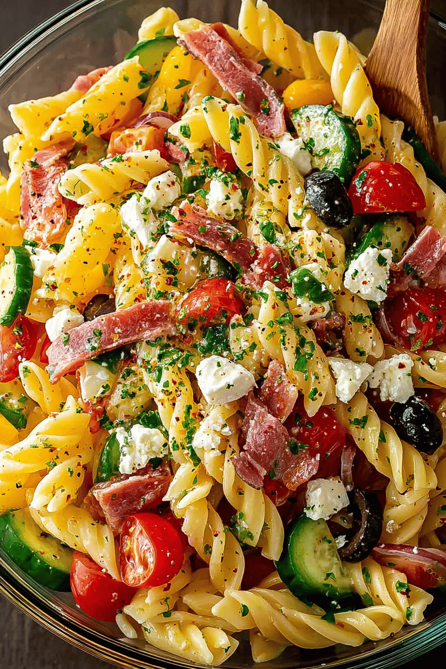 You basically throw this thing together while barely looking. First, cook your pasta to an al dente wonderland. Cool it down, ’cause nobody likes hot pasta salad (that’s just weird). Toss in chopped tomatoes, zippy peppers, juicy olives, and crunchy cucumbers. Top it all off with a whisk of olive oil, a smidge of vinegar, and a shower of Italian herbs. Honestly, it’s just a bowl of flavors begging for a fork.