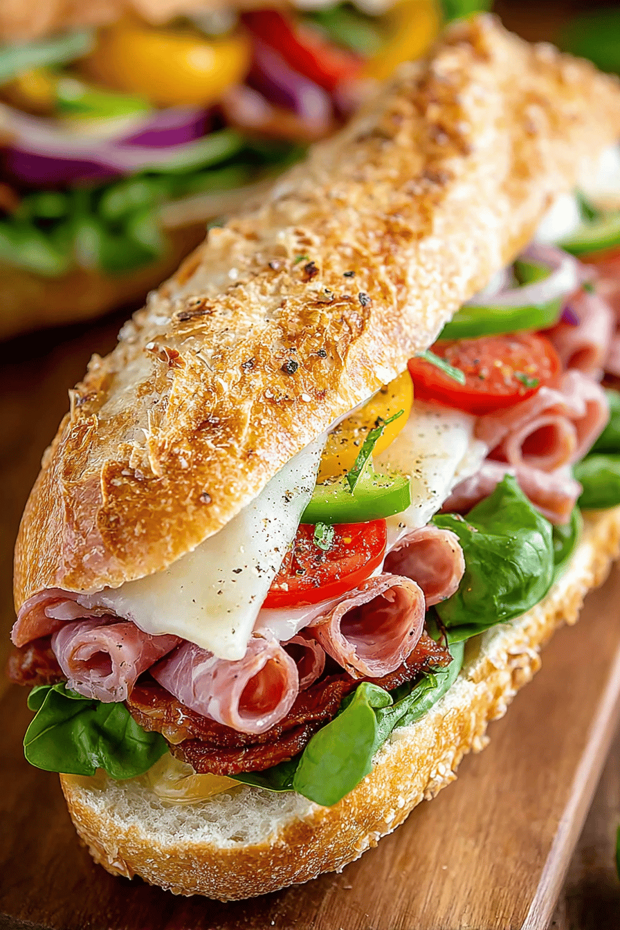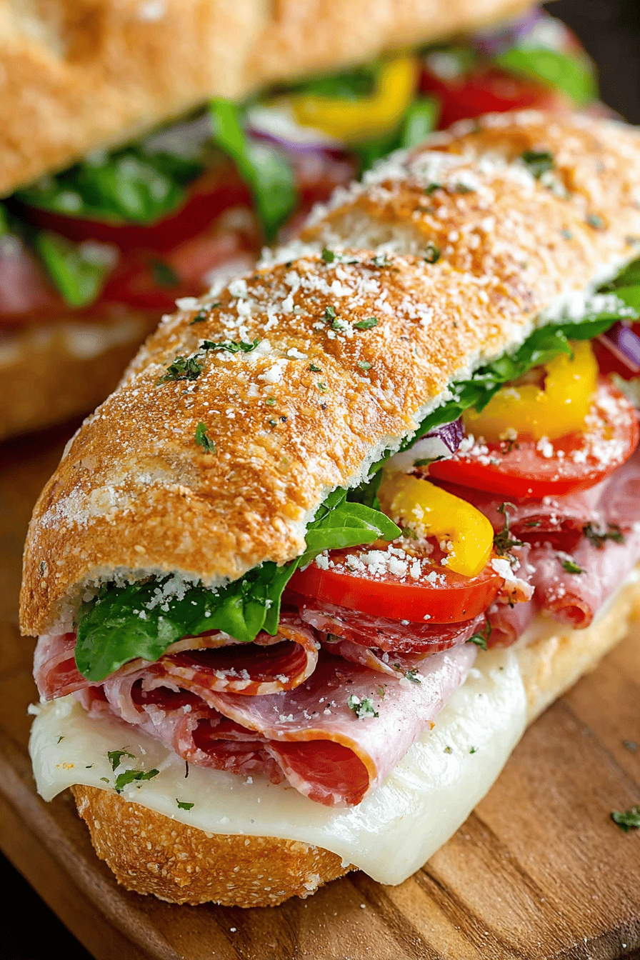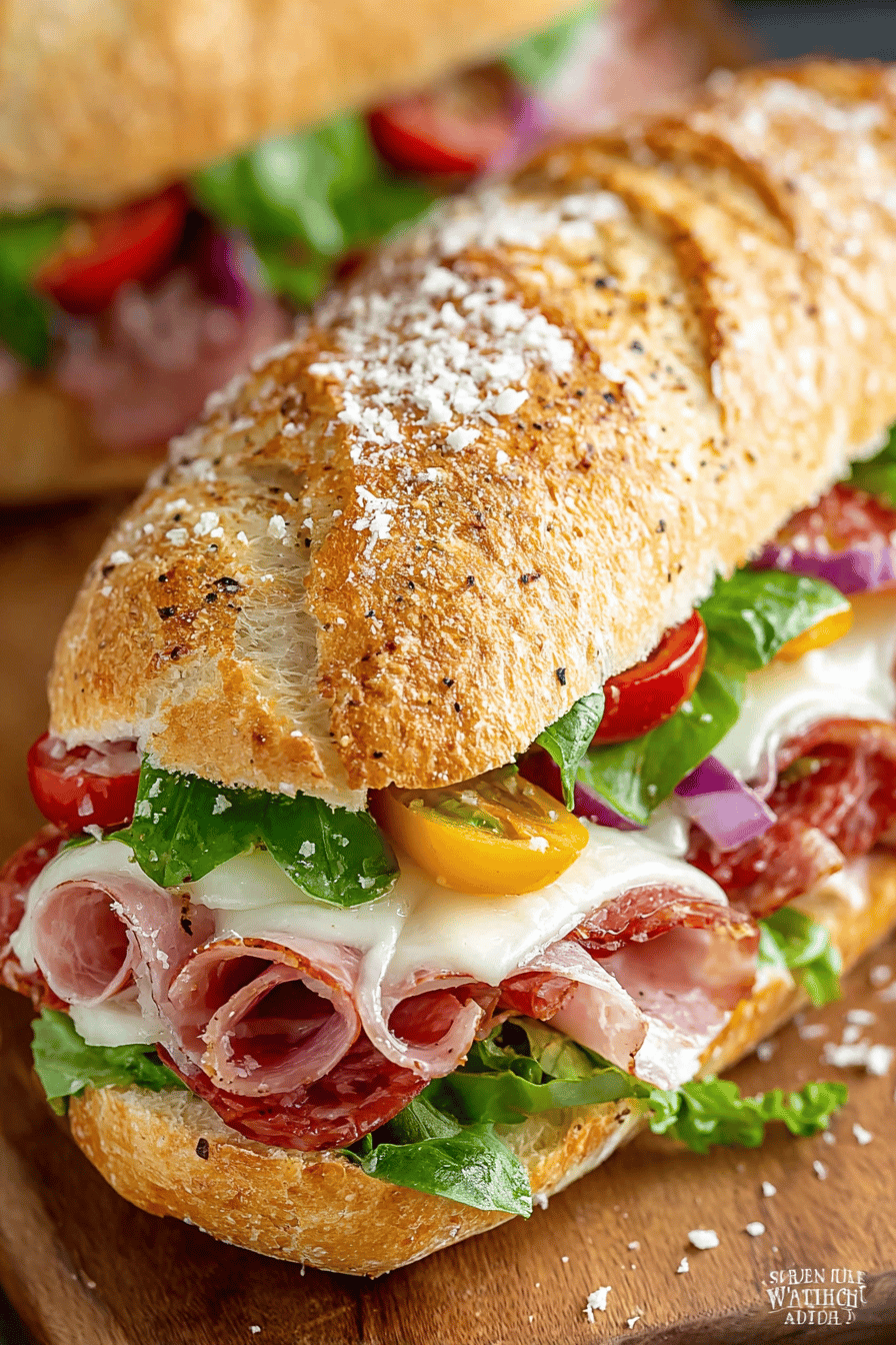 Picture me in the kitchen, chatting away with you while slicing meats and cheeses. First, fluff up that fresh sub roll and sneak in a cheeky taste of the pepperoni. My husband pops his head in, asking if I’m making “the good stuff” again. Maybe add Italian seasoning if you’re feeling fancy—makes it all tickle-your-taste-buds delightful. Layer the beautiful parade of meats and cheese, all while trying not to nibble every slice. Toss in a handful of crisp lettuce, slices of fresh tomato, and a hit of pepperoncini for that tangy crunch.