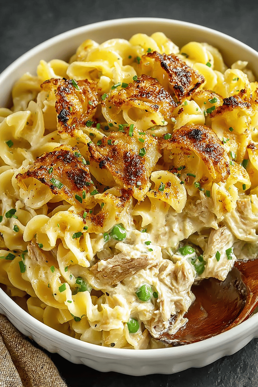 Picture this: you sidle up to your stove, tossing noodles into a bubbling pot. It’s ridiculously satisfying watching them transform from brittle sticks to tender comfort machines. Throw in chopped onion, maybe a splash too much, but who’s counting? Next comes a smattering of peas. Maybe they’re partially thawed, doesn’t matter—you’re a kitchen runaway train, and ain’t nothing stopping you. Stir in creamy mushroom soup and tuna, savoring that “where’s it been all my life” smell. Once it all comes together, pop it in the oven while you do a victory dance (optional, but recommended).