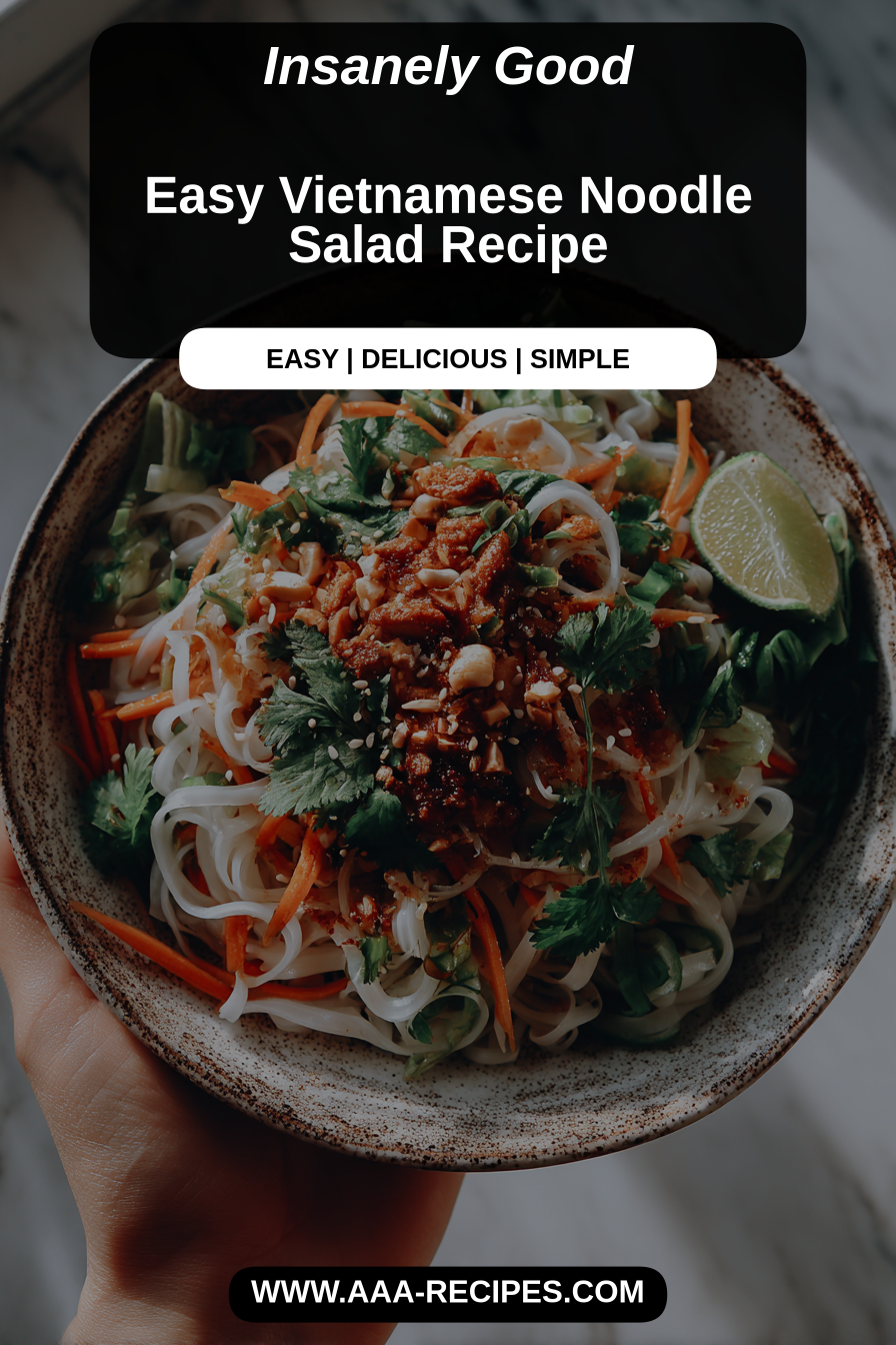 **Structural Requirements:** Oh, where do I even begin with why this noodle salad has become such a beloved fixture in our home? Firstly, it’s just so incredibly *fresh*. The moment you spoon it into a bowl, your senses are greeted by a medley of colors—the bright greens, the sunny oranges, the subtle pinks of shrimp if you add them—it’s like a vibrant garden on your plate. Then there’s the incredible balance of flavors: the tangy lime, the subtle sweetness of the dressing, the savory notes, all perfectly harmonized. It’s light enough that you feel energized after eating it, not weighed down, yet substantial enough to be deeply satisfying. You know those days when you crave something wholesome but don’t want to spend hours in the kitchen? This recipe is a lifesaver. It’s wonderfully adaptable, too, inviting you to use whatever crisp vegetables you have on hand, which means less food waste and more creative cooking. Plus, it’s a fantastic way to get everyone in the family to enjoy a rainbow of veggies. Honestly, the way it fills the kitchen with its fragrant aroma as you’re tossing everything together just makes your heart feel lighter. It’s a comforting hug in a bowl, a gentle nudge toward brighter, healthier eating, and a joyful burst of flavor that always brings smiles to our table. Making this Easy Vietnamese Noodle Salad is, for me, a truly meditative experience. It often begins with the quiet ritual of gathering, pulling out the brightest, freshest vegetables from the crisper drawer, each one cool and firm to the touch. I love the gentle thud of the knife against the cutting board as I finely julienne the carrots, creating those delicate, vibrant strips, or the satisfying whisper of the peeler as it glides down a cucumber, turning it into elegant ribbons. There’s a certain calm that comes with mincing the garlic and chili, the sharp, clean scents awakening the kitchen. My favorite part is probably whisking the dressing. Pouring in the fish sauce, the lime juice, the touch of sugar, and a swirl of sesame oil, then watching it emulsify, tasting and adjusting, adding just a whisper more of this or that until it hits that perfect, bright, zesty balance. It’s not rushed; it’s an intuitive dance of flavors. And then, the assembly. Laying the soft, silky vermicelli noodles in a large bowl, arranging the crisp vegetables like tiny jewels, perhaps scattering some grilled shrimp or tofu on top, and finally, the glorious drizzle of the dressing, watching it coat every ingredient, making everything glisten. The dog often pokes his head up at this point, sniffing the air, wondering what deliciousness is unfolding. It’s a moment of quiet creation, a simple joy in preparing something beautiful and nourishing for the ones I love. Sometimes, even with the best intentions, those quiet, meditative moments feel a bit elusive, don’t they? For those days when life is just moving a little too quickly, I have a few gentle tricks up my sleeve for this salad. First, grab a pre-shredded bag of carrots and cabbage from the grocery store. It saves a good chunk of chopping time and honestly, they work beautifully. You can also buy already cooked shrimp or even pre-grilled chicken strips, making the protein element a breeze. I often whisk up a double batch of the dressing on a Sunday and keep it in a jar in the fridge—it stays lovely for days and means half the work is done for a busy weeknight. Another little helper is to use your food processor with a slicing or grating attachment for things like cucumbers or bell peppers if you have one. It’s not about losing the joy of the process, but about finding moments where you can gently lighten the load. That said, I’ve found that truly allowing the dressing to sit for even an extra 15 minutes before tossing, letting those flavors meld and deepen, makes all the difference. Sometimes, a little patience is the best hack of all. This Easy Vietnamese Noodle Salad is so wonderfully versatile, it truly feels at home in many different settings. For a simple weeknight, it’s a complete meal all on its own, especially if you add some grilled chicken or tofu directly to the bowls. We often enjoy it with a side of crispy homemade spring rolls, hot from the air fryer, which adds a lovely crunch. On a slower weekend, when we have a bit more time, I might serve it with a light, clear broth soup, like a simple chicken or vegetable broth, to start. To drink, a crisp, cold sparkling water with a slice of lime and a sprig of mint is always refreshing, or perhaps a gentle green tea. If you’re feeling extra festive, a light beer or a crisp white wine pairs beautifully with the bright flavors. For toppings, don’t forget a generous sprinkle of crushed peanuts for texture and a handful of fresh cilantro or mint leaves to really elevate the aroma. You can even add a tiny drizzle of sriracha if you like a little extra warmth, though I usually leave that for individual preference. For another lovely accompaniment, try my Lemongrass Chicken Skewers—they’re a perfect match. Making this noodle salad is usually a joyful process, but I’ve definitely learned a few things along the way! My biggest tip is to really embrace the *freshness* of the ingredients. Don’t skimp on the fresh lime juice or the vibrant herbs—they truly make the dish sing. A common little mishap I’ve had is overcooking the vermicelli noodles; they’re so delicate! You want them just tender, not mushy, so be sure to follow the package directions carefully and rinse them immediately with cold water to stop the cooking. Another friendly nudge: taste your dressing *before* you add it to the salad. It’s much easier to adjust the balance of sweet, salty, and sour when it’s separate. I remember once, I was distracted by a phone call and forgot to add the sugar, and while it was still good, it didn’t have that signature bright harmony. You can always add a touch more of any el