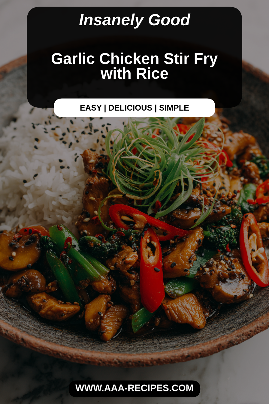 This Garlic Chicken Stir Fry with Rice is one of those dinners that feels both familiar and a little bit bright — like a favorite sweater you only pull out for the weekends. It’s simple enough to come together on a weekday evening but rich enough to feel celebratory when friends drop by. The garlic sings softly through the chicken, the vegetables keep a bit of bite, and the rice carries it all like a warm, steady hum. I love it because it’s honest food: comforting, a little savory, and forgiving in the best way.