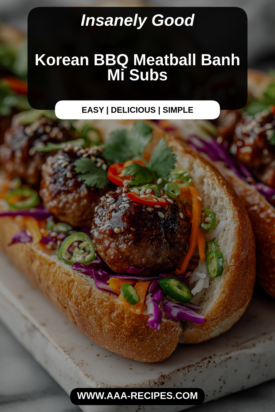 There are recipes that arrive with fanfare and others that slip into your week like a favorite sweater — comfortable, a little worn-in, and instantly calming. The Korean BBQ Meatball Banh Mi Subs are very much the latter for me. They take the warmth and sweetness of a simple meatball, lend it a glossy, soy-sweet kick from Korean-style barbecue flavors, and tuck everything into a crisp, airy roll with crunchy pickles and herb-fresh brightness. It’s the kind of sandwich that makes the kitchen smell like something worth pausing for: sweet grill smoke, caramelized edges, the bright zing of vinegar and cilantro. Honestly, that first bite feels like a small, delicious celebration of ordinary afternoons.
