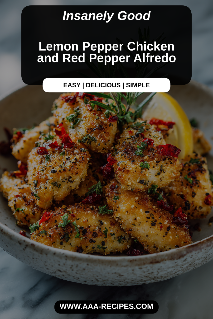 There’s something quietly joyful about a dish that feels both a little bit special and utterly everyday, and that’s exactly how I think of Lemon Pepper Chicken and Red Pepper Alfredo. It’s bright and creamy at once — lemon-threaded chicken with that zing of pepper, folded into a silky red pepper cream that stains the pasta a warm, rosy color. It’s the kind of meal you make when you want comfort without heaviness, a Sunday-dinner hug that’s perfectly at home on a Wednesday night when you need a small celebration of good food and uncomplicated company.